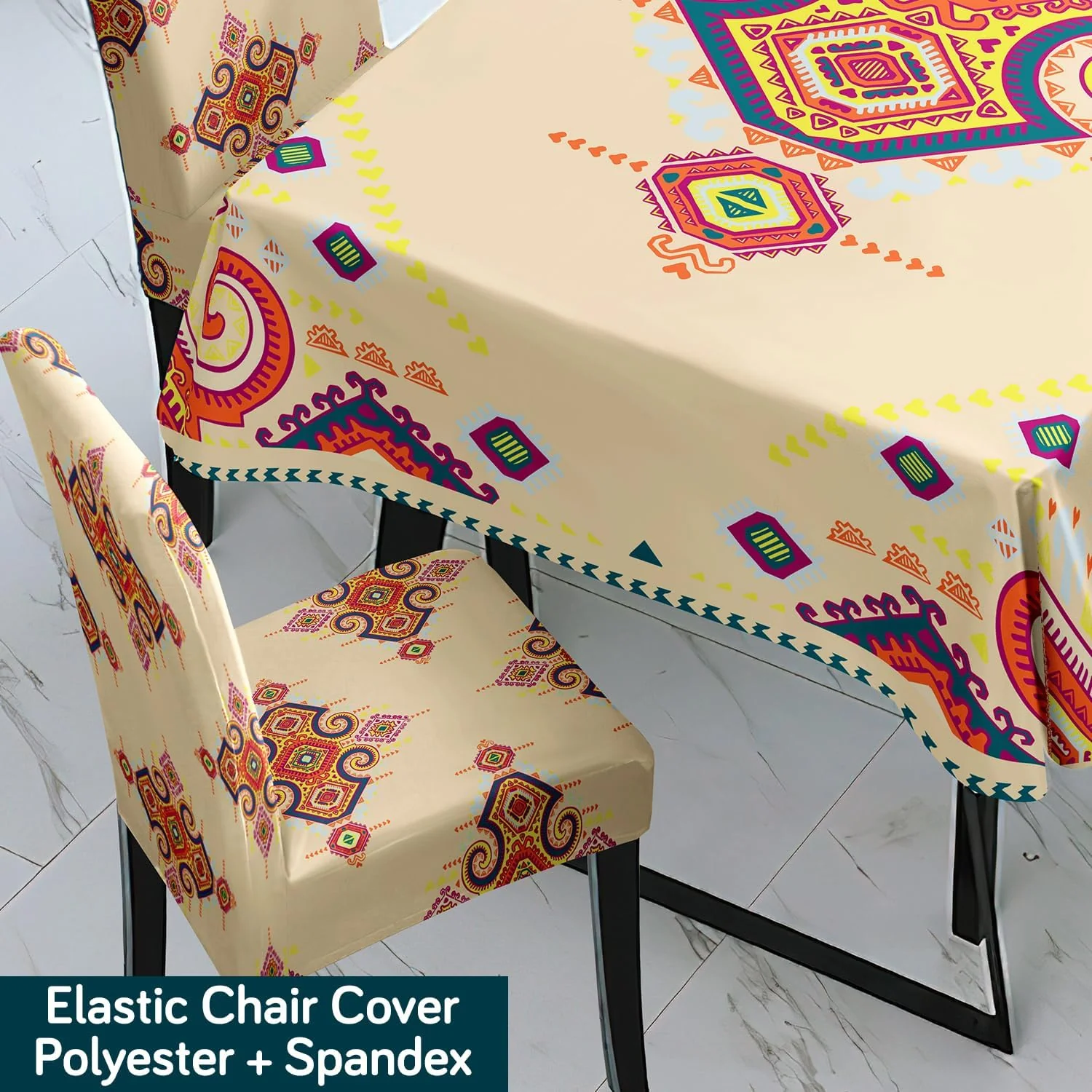 - Pack of 4 / Pack of 6 elastic dining chair covers with matching table cloth.