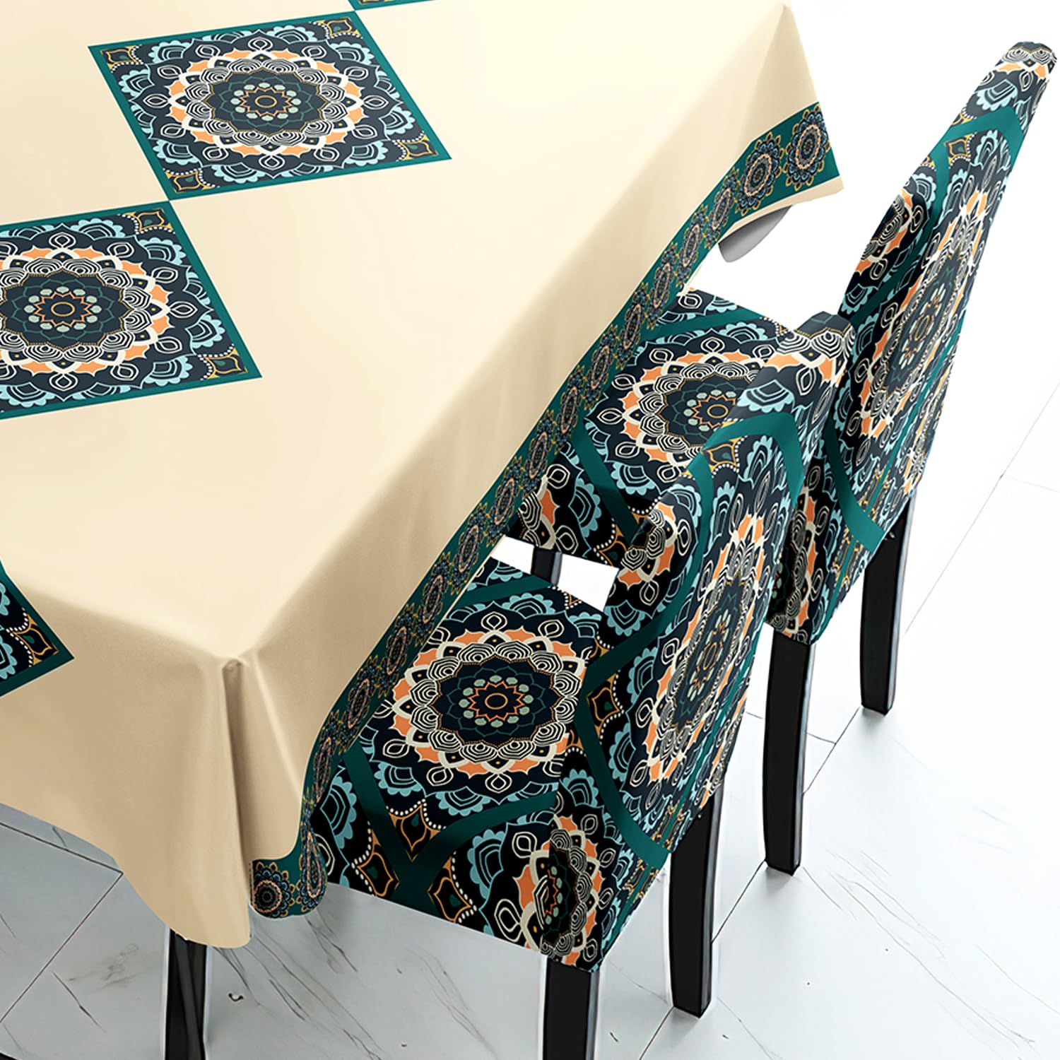 - Pack of 4 / Pack of 6 elastic dining chair covers with matching tablecloth.