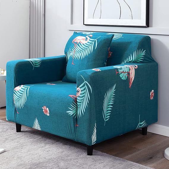 Elastic Stretchable Printed Sofa Cover, Teal Feathers