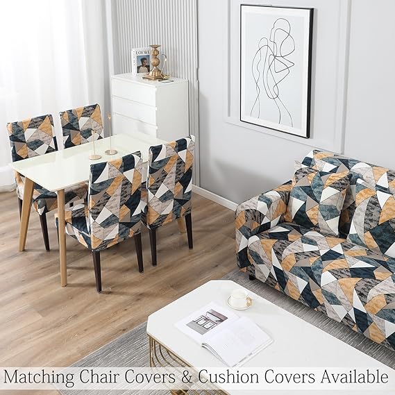 -70%Elastic Stretchable Printed Sofa Cover, Multicolor Geometric Print—