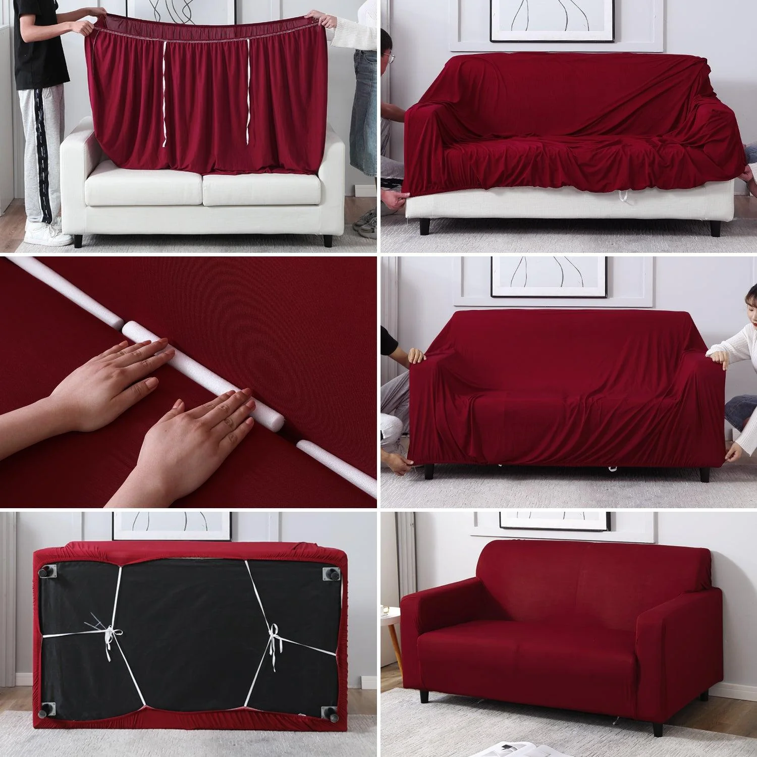 -70%Elastic Stretchable Sofa Cover, Maroon—
