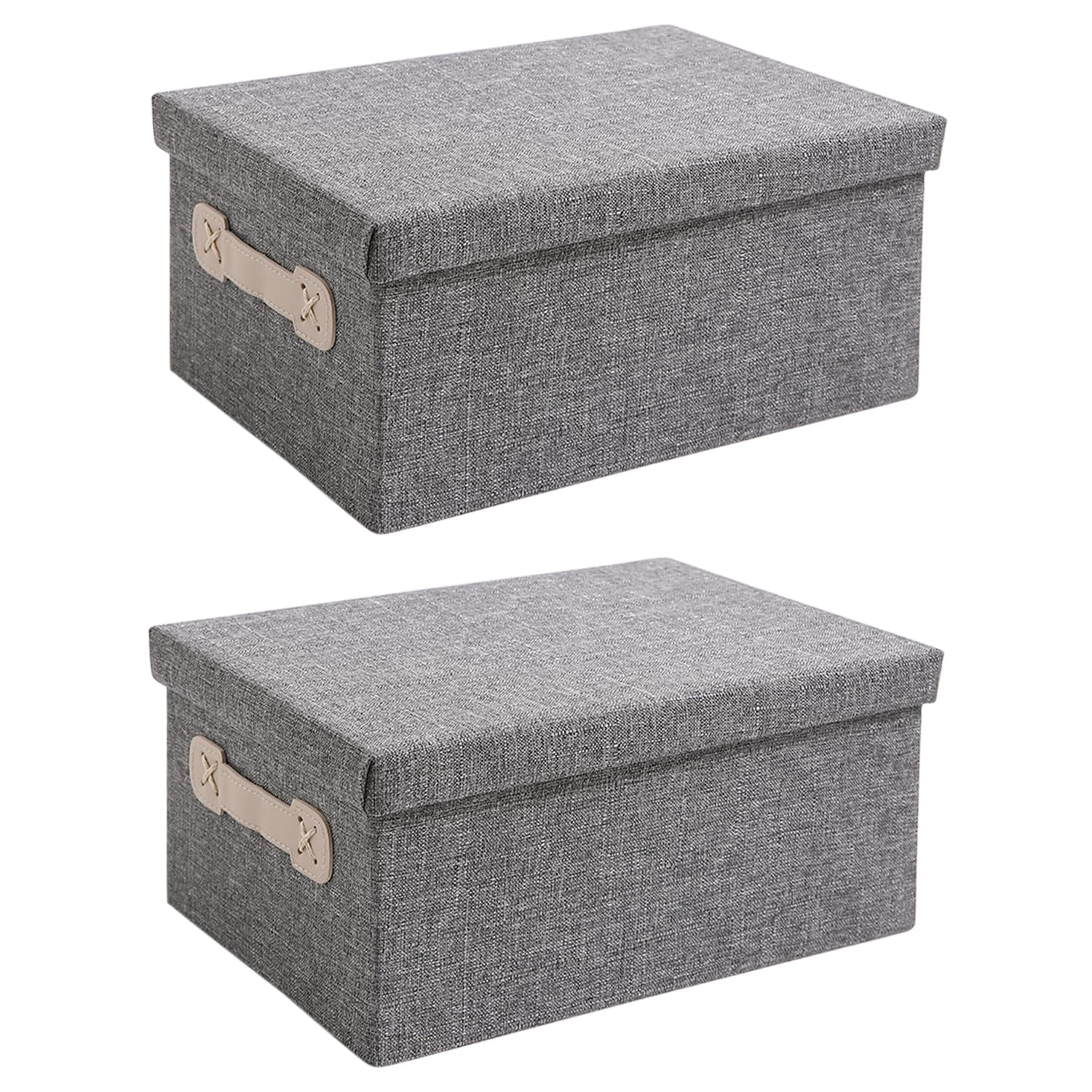 Organisers Storage Box with Lid, Grey, Pack of 2