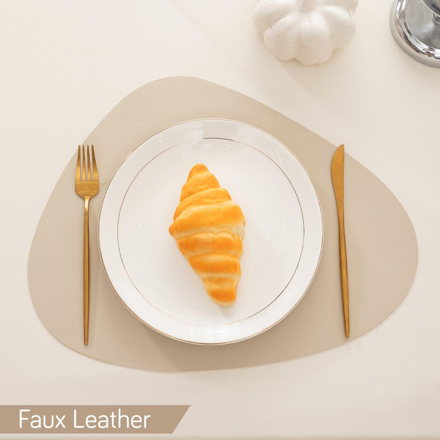 -70%Premium Faux Leather Dining Table Mats, Beige—