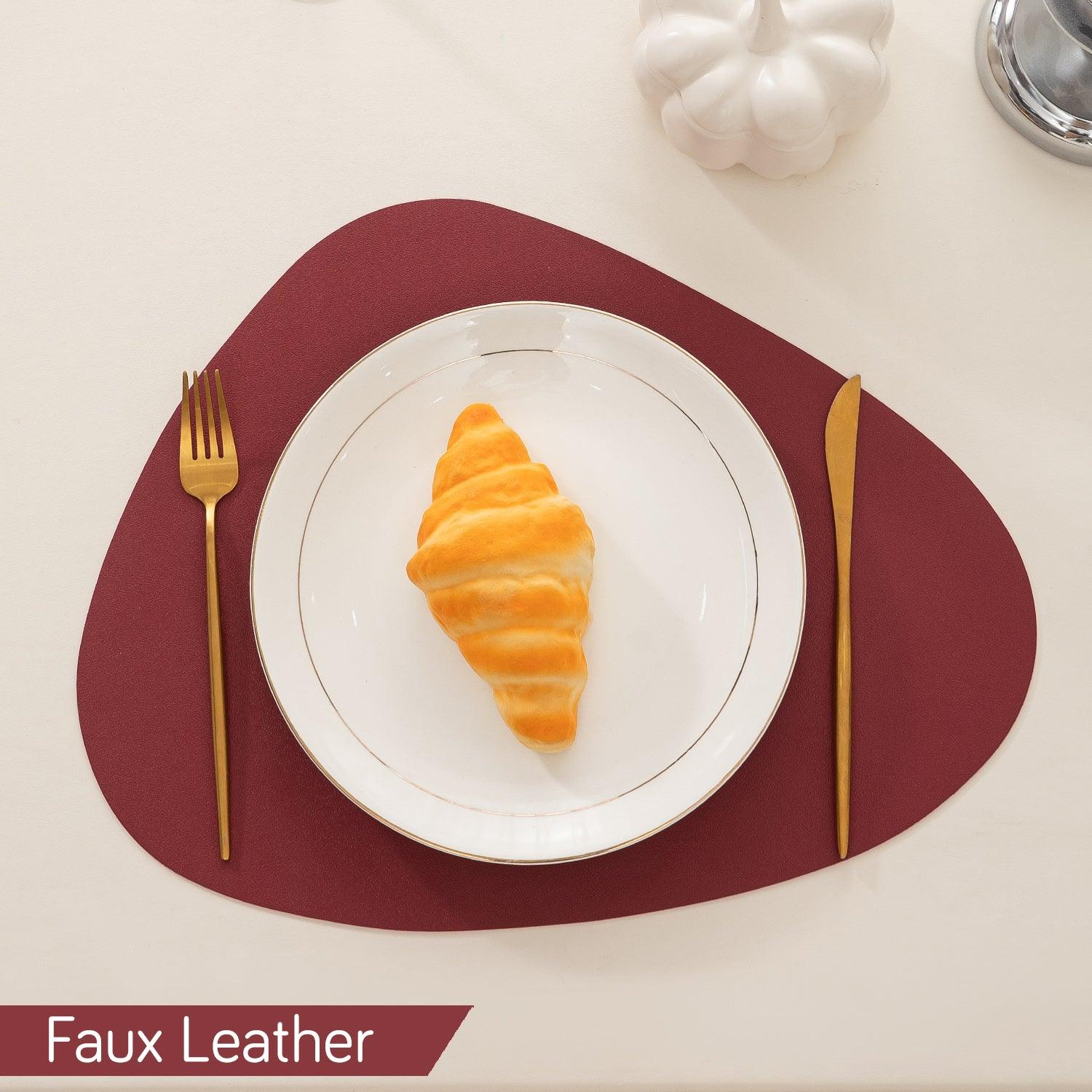 -70%Premium Faux Leather Dining Table Mats, Maroon—