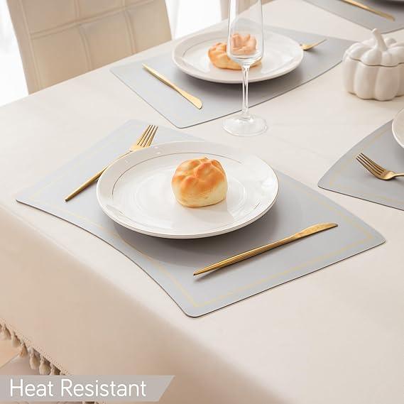 Premium Faux Leather Dining Table Mats, Silver Grey—