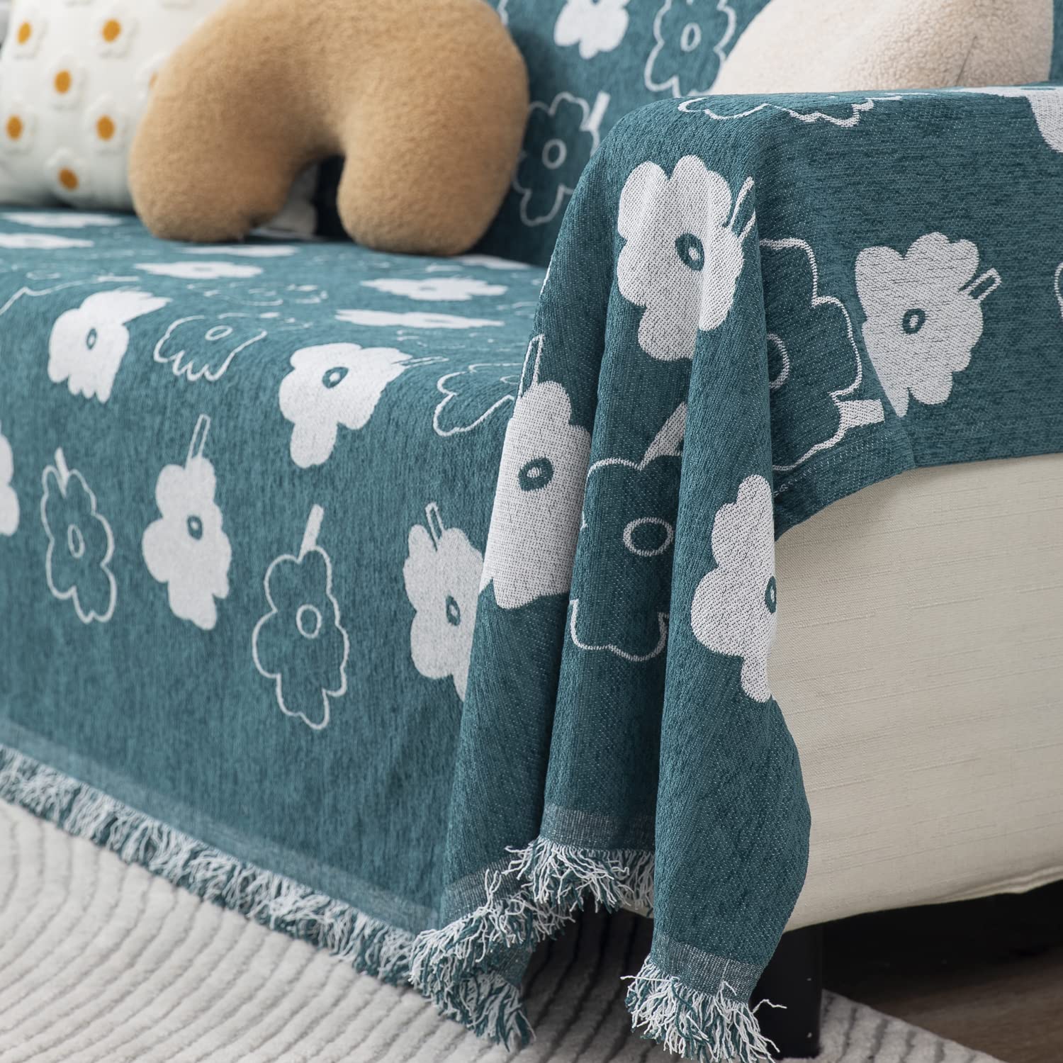 Thick, Soft and Pet Friendly Chenille Sofa Cover Throw, Teal Floral