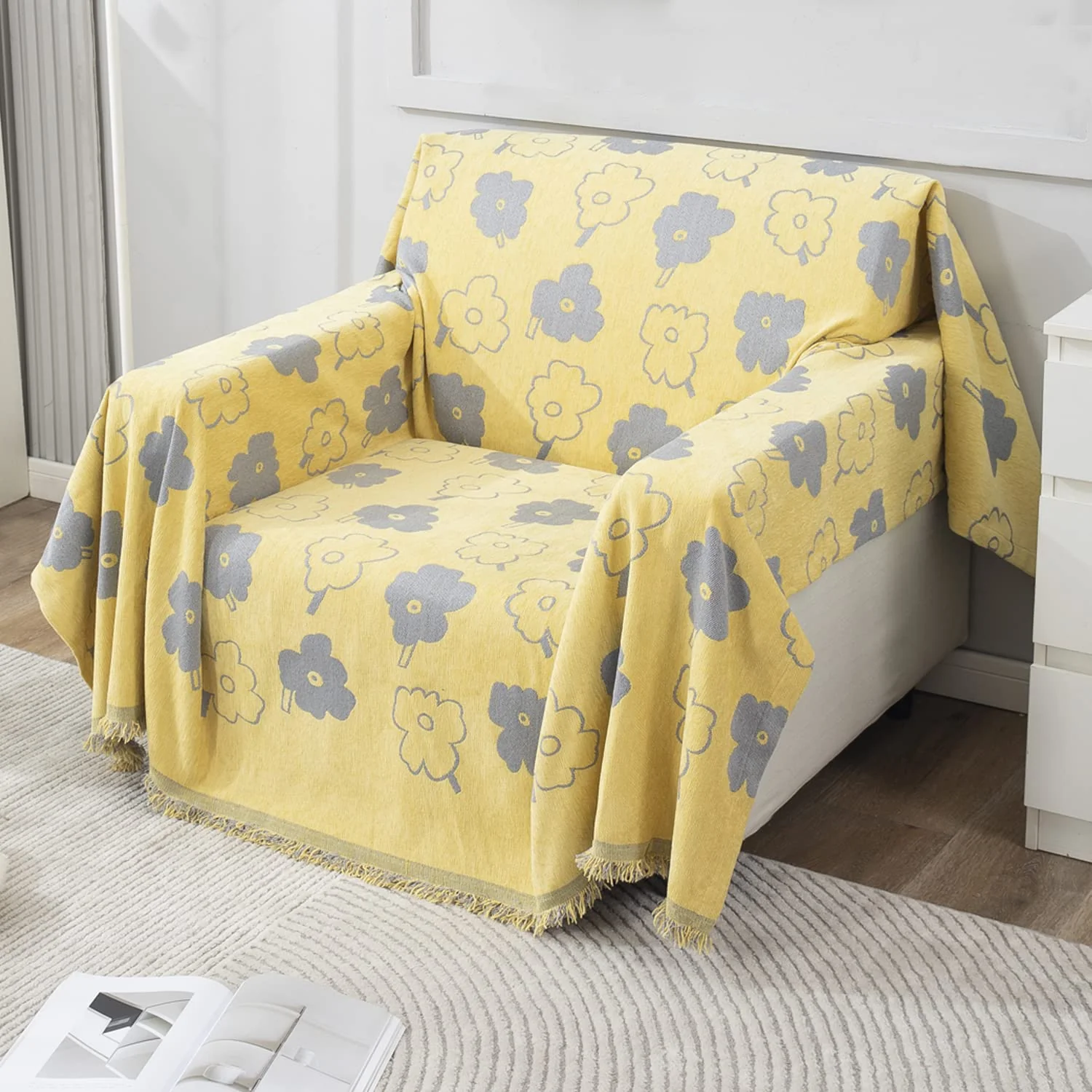 Thick, Soft and Pet Friendly Chenille Sofa Cover Throw, Yellow Floral